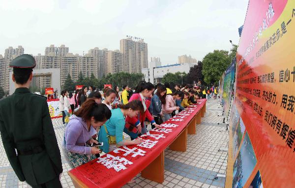 副校长韩权宣布“高举五四火炬,奉献火热青春”纪念五四运动95周年系列活动正式启动。全体师生在横幅“高举‘五四’火炬,永葆先进本色,争当文理先锋;弘扬‘五四’精神,勇挑时代重任,奉献火热青春”上签名,为“五四”青年节献礼。参加仪式的团员表示,要积极承担历史重担,勇往直前,努力奋进,赋予“五四”精神新的活力,使“五四”精神在新时代绽放出更加夺目的光彩。